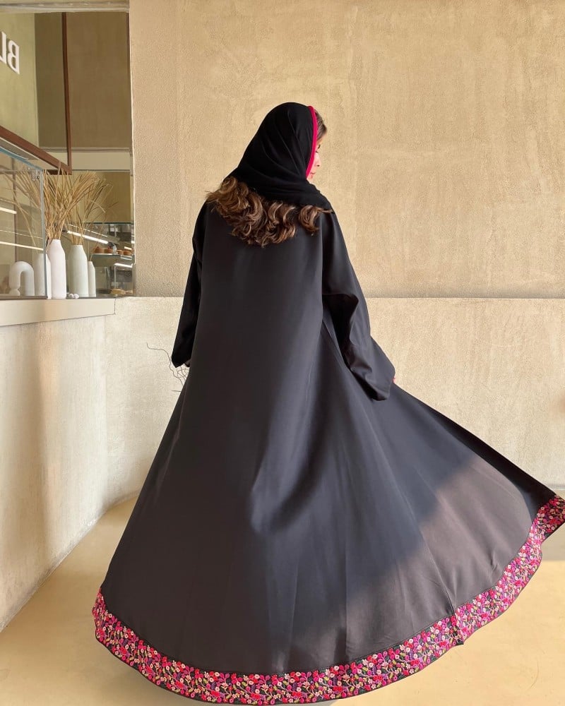 وفي أسفل العباية كُلفة تطريز ورود 💕🌺🌸