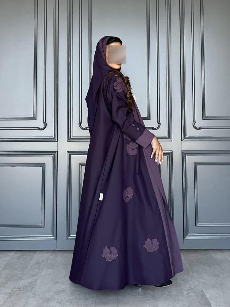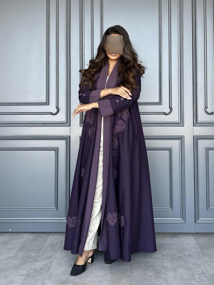 قماش العباية : تفتة ستريتش مزينة بتطريز بارز ومميز وكريب ناعم على الاطراف