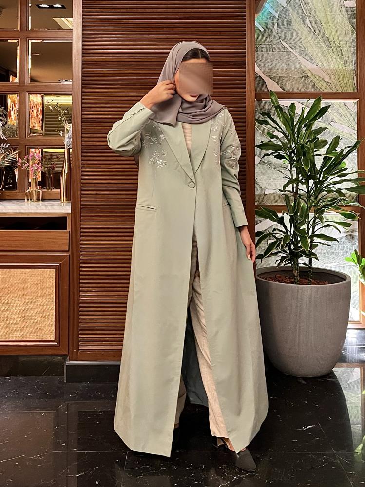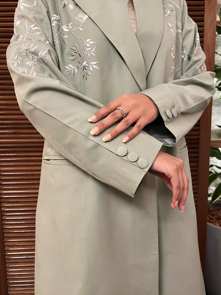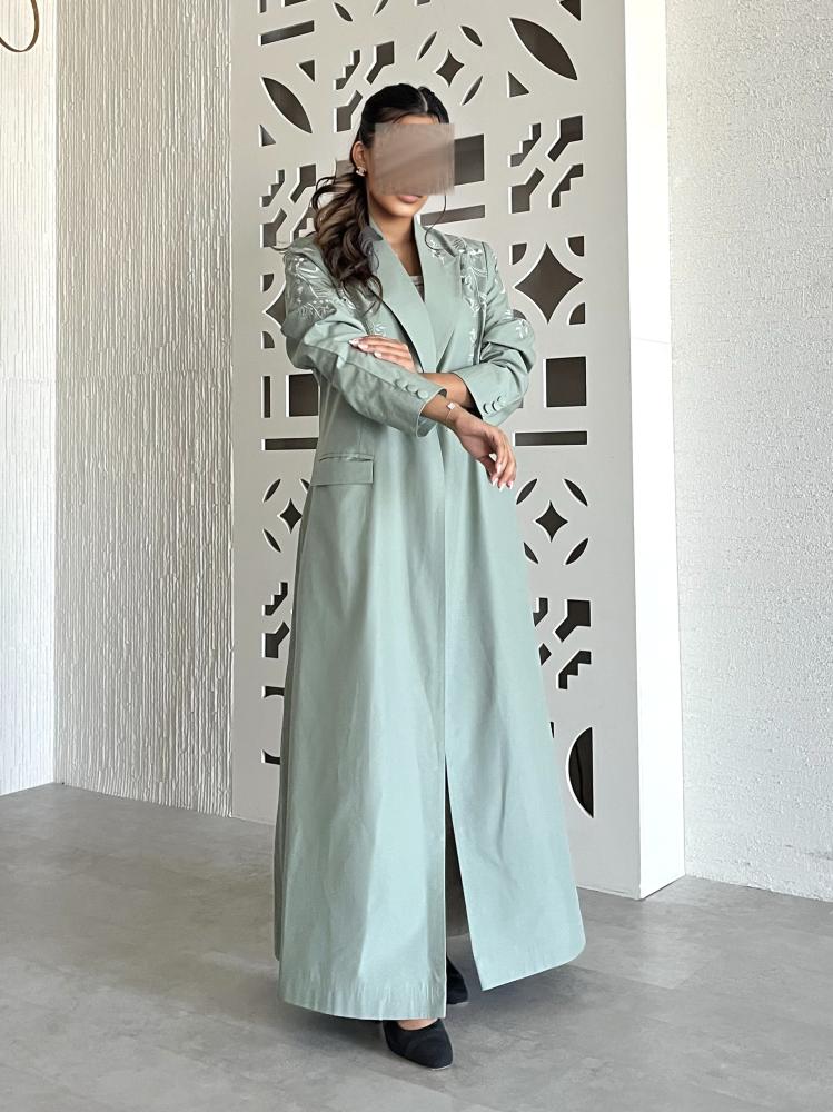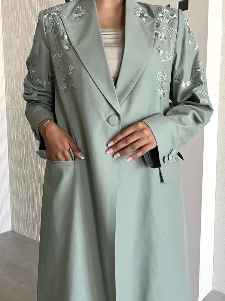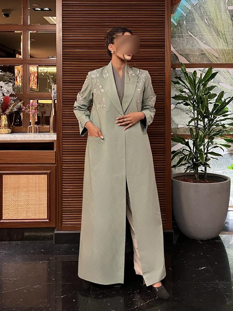 قماش العباية : بيكاسو رسمي مع تطريز انيق على الاكتاف العباية مبطنة وبقصة الـ SUIT الأساسية